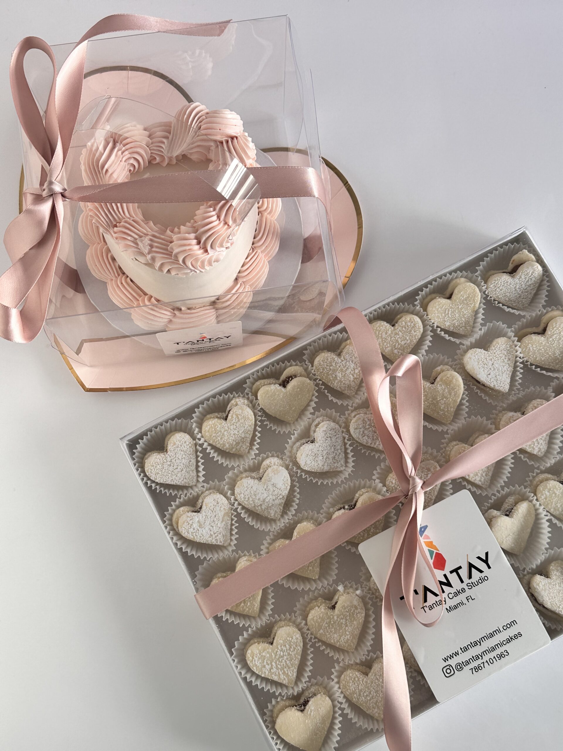 Each box comes with either 12 or 35 heart shaped alfajores.